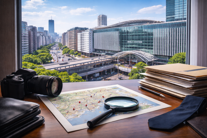 調査の実地研修では、尾行や張込みなど探偵業務の基本技術を現場で実践的に学びます。対象者に気づかれずに動向を追う技術や、状況に応じた柔軟な対応力を養成します。また、調査後は報告書作成の研修を行い、証拠写真の整理や、客観的で正確な文章作成のスキルを習得してもらいます。